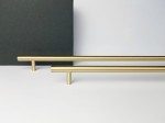 Starannie wykonany podłużny uchwyt meblowy wykonany z lakierowanego mosiądzu. Ekskluzywny i nowoczesny.
